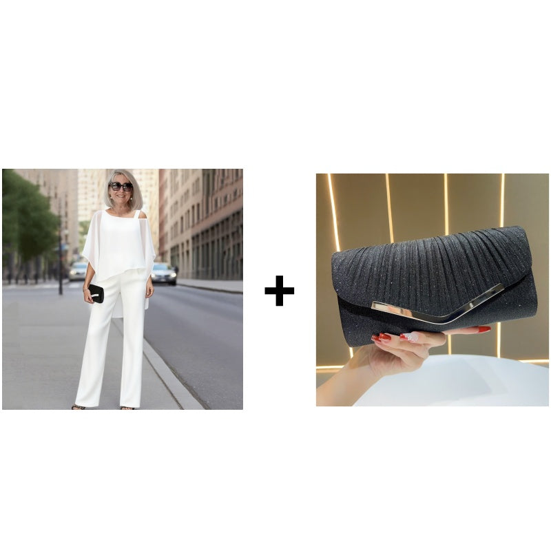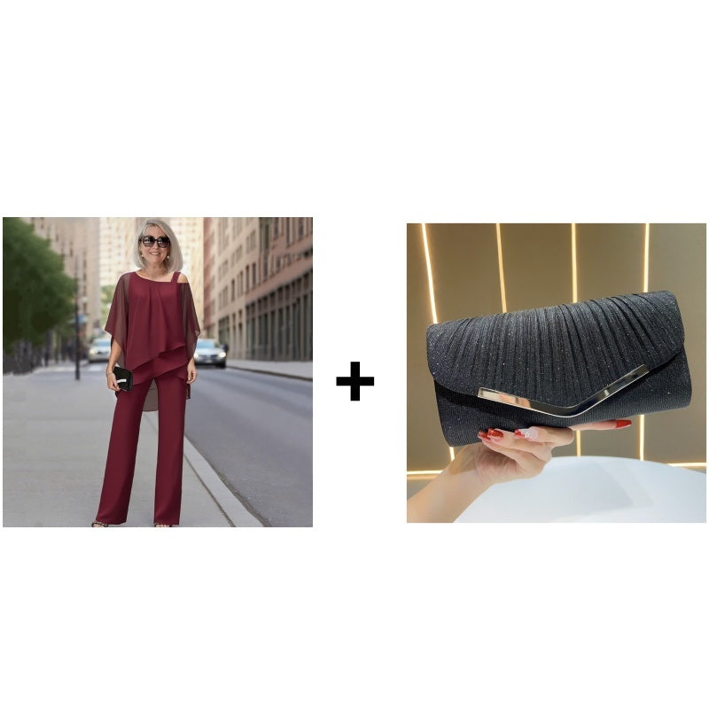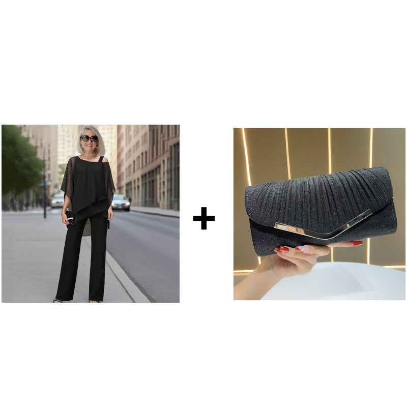 ⏳Begränsad tid 50 % Rabatt⏰Oregelbundna chiffongtoppar för kvinnor & vidbyxor 2-delars set👚👖