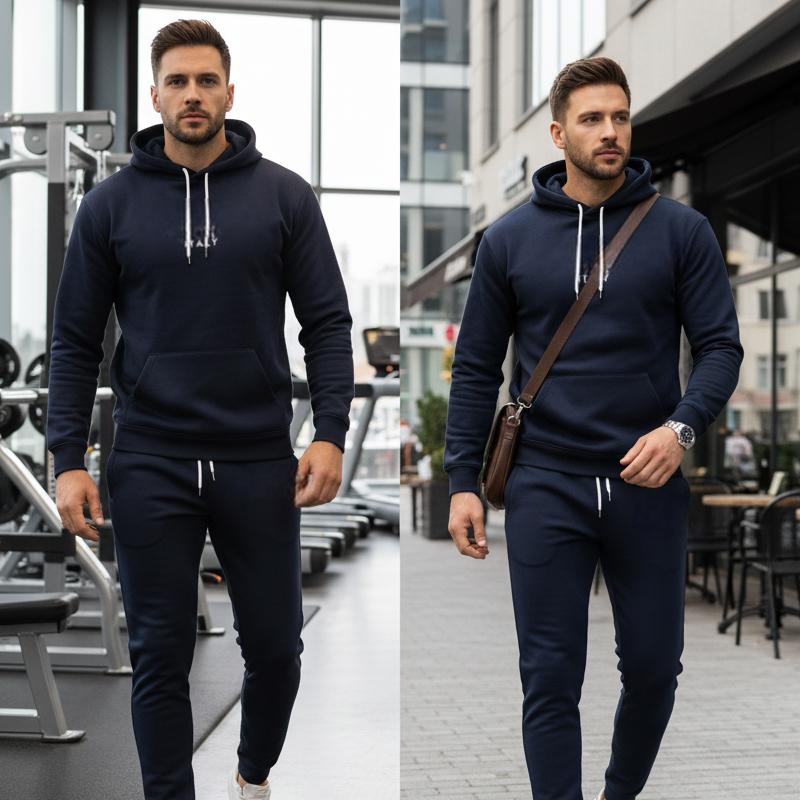 đ„ Herr TrĂ€ningsset | Trendig Letterprint, Mjukt Hoodie & Byxor 2-delat đââïž