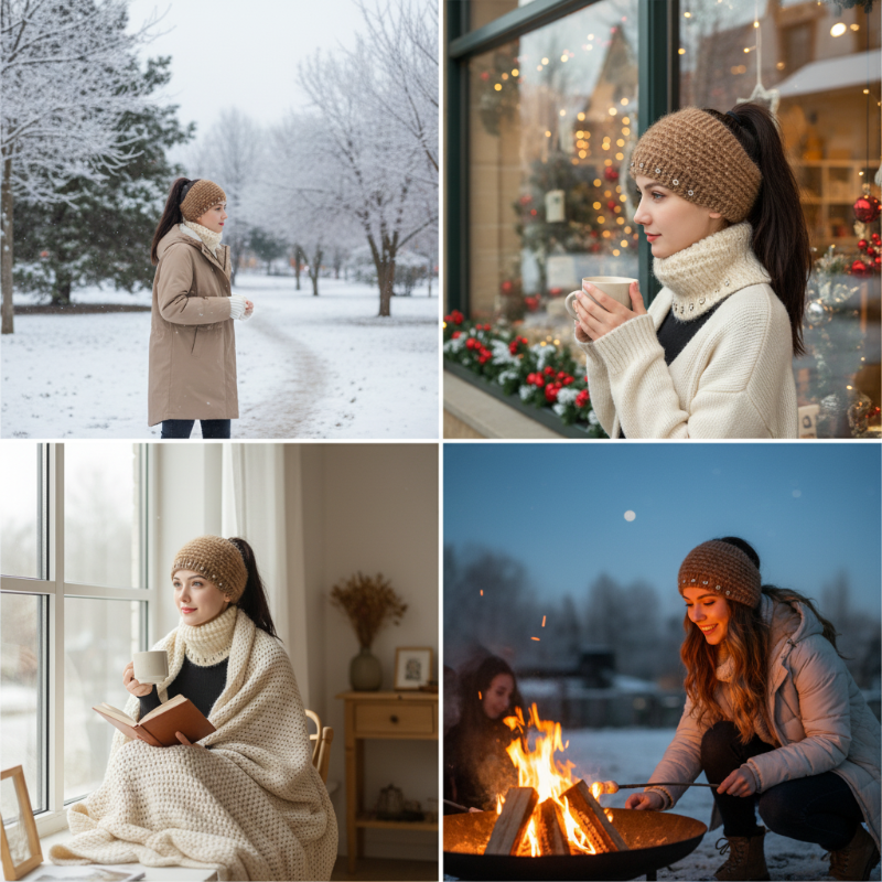đ„â° Julens specialerbjudanden đ„Stickat pannband för kvinnor med blommiga detaljer